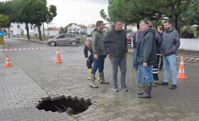 Burhaniye'de kanalizasyon çökmesi nedeniyle yol trafiğe kapatıldı