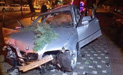 Osmangazi Çekirge Caddesi'nde sabah saatlerinde meydana gelen kazada, araç önce levhaya sonra ağaca çarptı