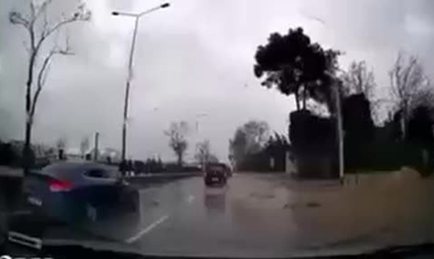 Mudanya yolu üzerinde seyreden bir sürücü, aracının kamerasıyla fırtına nedeniyle bir ağacın yola devrilme anını kaydetti. Aracın arka kamerasına yansıyan görüntülerde ana yolun boş olduğu sırada kuvvetli rüzgârın etkisiyle ağacın devrildiği görülüyor.