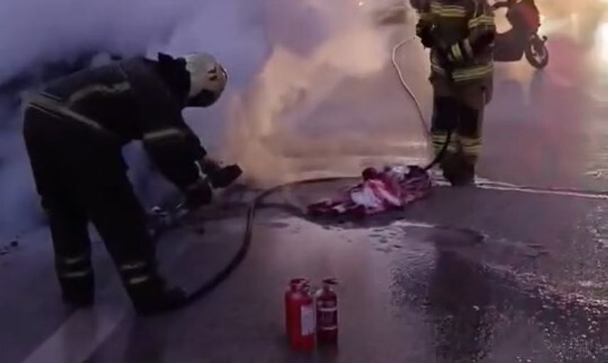 Sürücü ilk müdahaleyi araçtaki bir yangın tüpüyle yapmaya çalıştı; alevlerin bir anda büyümesi üzerine çevredeki vatandaşlar da kendi yangın tüpleriyle müdahaleye destek verdi. Kısa süre sonra olay yerine gelen itfaiye ekipleri müdahalede bulundu, ancak otomobilin motor bölümü tamamen küle döndü.