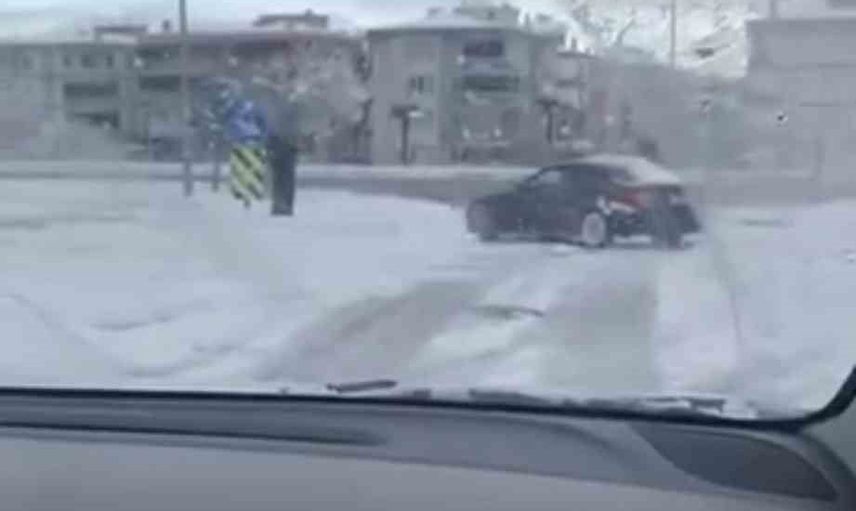 Bursa merkezinde etkili olan kar yağışı sonrası yollardaki kayganlık, bir sürücünün riskli davranışına sahne oldu. Sürücü, kavşakta aracını kaydırarak drift yaptı ve bu hareketiyle hem kendi canını hem de trafikteki diğer kişilerin güvenliğini tehlikeye attı.