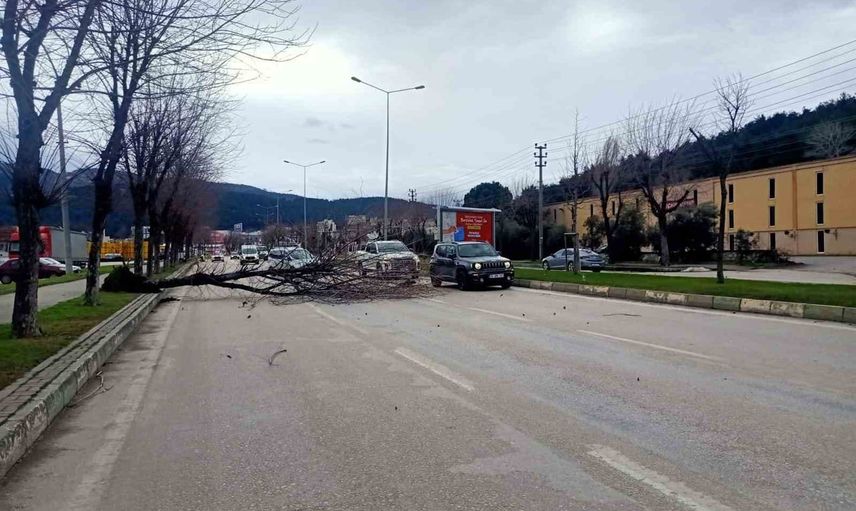 Bursa'da kuvvetli lodos ağaçları devirdi, sürücüler 112'yi aradı