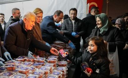 Bursa Büyükşehir Belediye Başkanı Mustafa Bozbey, eşi Seden Bozbey ile birlikte Emir Sultan Camiinde Bursalılarla buluştu; yatsı namazı sonrasında vatandaşlara tatlı servisi yaptı.
