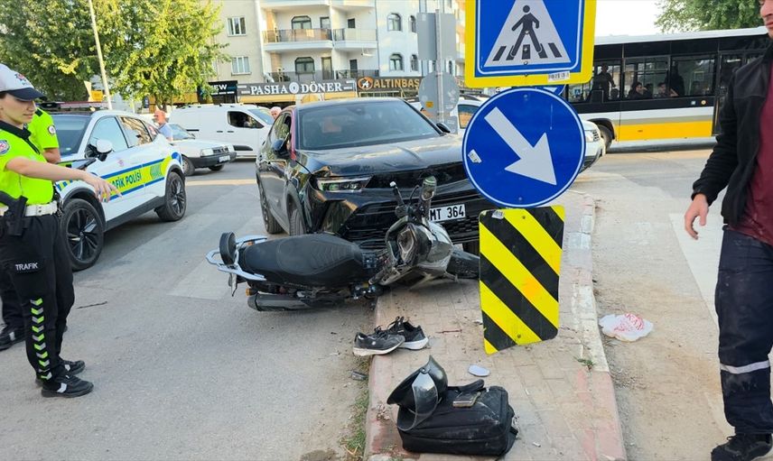 Bursa'nın İnegöl ilçesinde meydana gelen bir trafik kazasında, bir cip ile motosikletin çarpışması sonucu iki kişi yaralandı. Kaza anı, çevredeki bir iş yerine ait güvenlik kameraları tarafından kaydedildi.