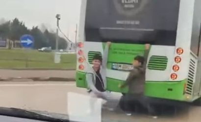 Oyun oynadıklarını düşünen çocuklar, uzun süre otobüsün arka bölümüne tutunarak yol aldı. Bu davranış hem kendi can güvenliklerini hem de trafikteki diğer vatandaşların güvenliğini riske attı.