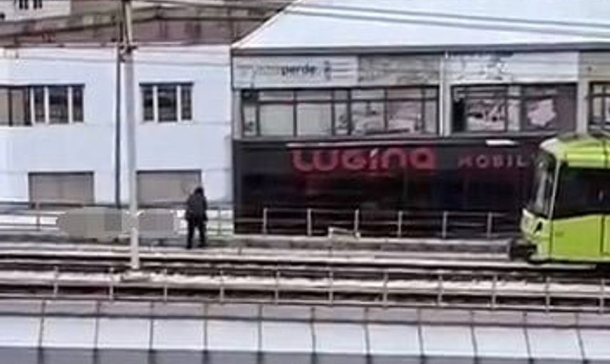 Vatman treni durdurup raylara inince tehlikeli anlar yaşandı