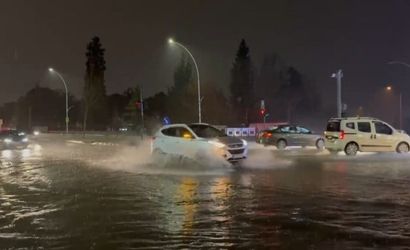 Bursa'da etkili olan sağanak yağışın ardından Yıldırım ilçesindeki Mimarsinan Mahallesi Emniyet Caddesi bölümünde rögarların taşması sonucu cadde göle döndü.