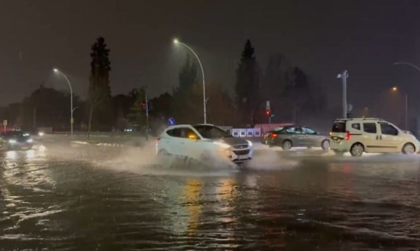 Kameralara yansıyan görüntülerde araçların su içinde ilerlemeye çalıştığı ve yayaların güvenli geçiş için süre beklediği görüldü.
