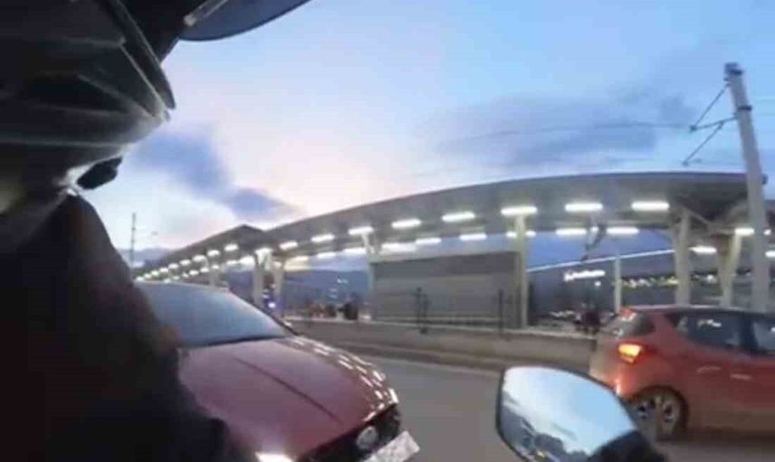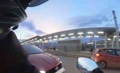Kamera kaydı: Yaşanan arbede, motosiklet sürücüsünün kask kamerasına anbean yansıdı.