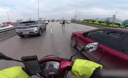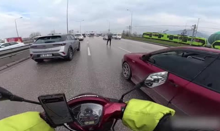 Bursa-İzmir Yolu üzerinde iki sürücü arasında yaşanan "yol verme" tartışması kısa sürede fiziksel kavgaya dönüştü. Sürücüler araçlarından inerek birbirlerine uçan tekmelerle saldırdı; kavga anları çevredeki güvenlik kameralarına yansıdı.