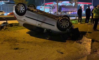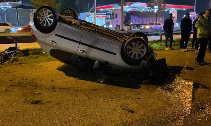 Bursa-Ankara karayolu üzerinde, Bursa yönünden İnegöl istikametine giden Gökhan D. (21) idaresindeki 09 DJ 207 plakalı otomobil, sürücünün kontrolünü kaybetmesi sonucu takla atarak yan yola devrildi.