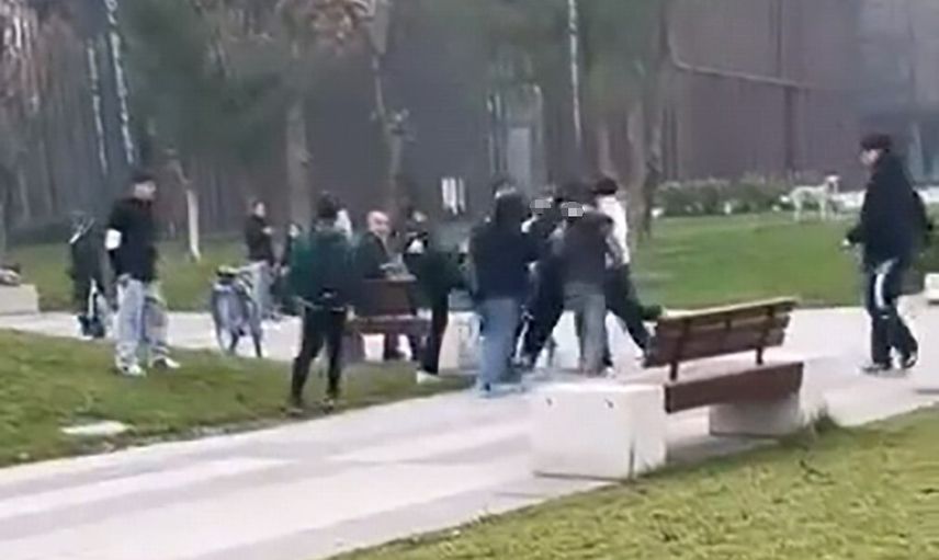 Bursa'nın İnegöl ilçesinde, İnegöl Kent Meydanında iki genç grup arasında yaşanan tartışma kısa sürede kavgaya dönüştü. Gençler, meydanın ortasında bir süre boyunca birbirlerine sert şekilde saldırdı.