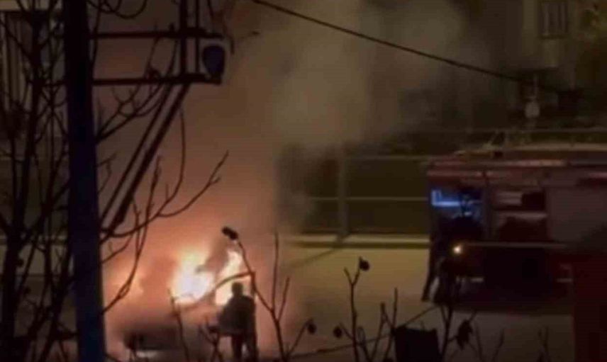 BURSA'NIN YILDIRIM İLÇESİNDE HAFİF TİCARİ BİR ARAÇ, GECE SAATLERİNDE HENÜZ BİLİNMEYEN BİR SEBEPTEN DOLAYI ALEV ALDI. KISA SÜREDE BÜYÜYEN YANGIN MAHALLEDE PANİĞE NEDEN OLDU.