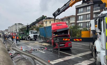 D-100 kara yolu, Büyükçekmece bölgesinde meydana gelen bir olay nedeniyle geçici olarak kapandı. Kontrolden çıkan bir tır, yağışın etkisiyle kayganlaşan yolda devrildi.