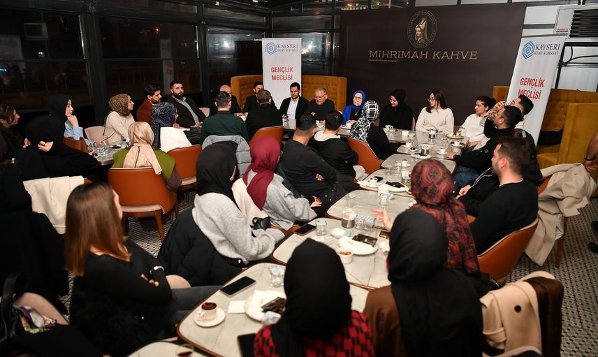 Gençlerin davetiyle buluştuklarını belirten Başkan Büyükkılıç, "Kayseri Kent Konseyi Gençlik Meclisi’ndeki gençlerimiz 'Başkanım hep birlikte bir kahve içip sohbet edebilir miyiz?' dediler. Kıymetli eşim Necmiye Hanım ile birlikte bu güzel davete icabet ederek gençlerimizle bir araya geldik" diye konuştu.