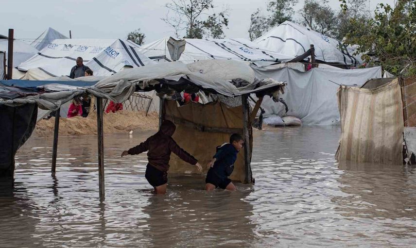 GAZZE ŞERİDİ'NDE ETKİLİ OLAN BYRON FIRTINASI NEDENİYLE 12 KİŞİ HAYATINI KAYBETTİ, 27 BİNDEN FAZLA ÇADIR KULLANILAMAZ HALE GELDİ.