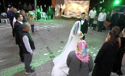 Eğlencenin sürdüğü anda gelin ve damat düğünü yarıda keserek, Türkiye Cumhuriyeti'nin kurucusu Gazi Mustafa Kemal Atatürk ve silah arkadaşlarının anısına saygı duruşunda bulundu. Davetlilerle birlikte İstiklal Marşının okunmasıyla tören, anlamlı bir görüntüye dönüştü.