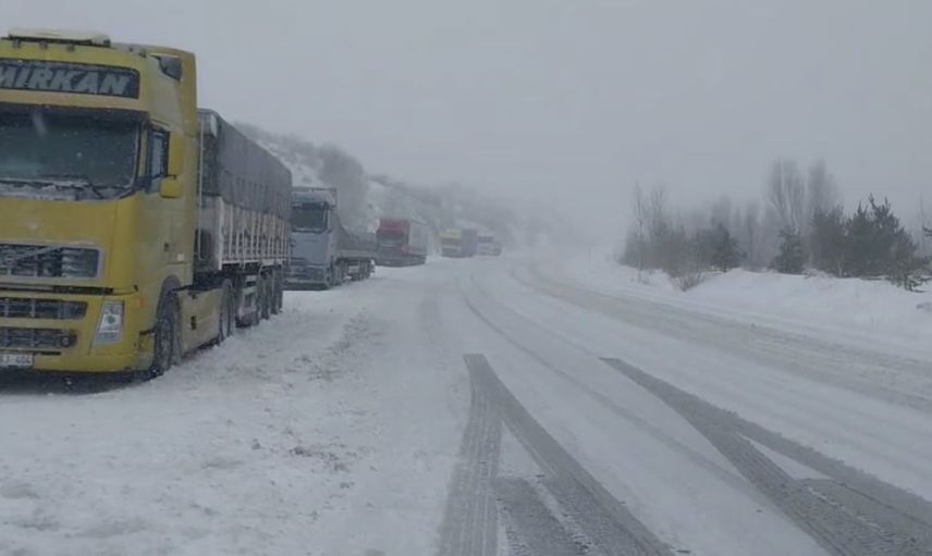 Yoğun kar nedeniyle bazı tırlar yolda mahsur kaldı; ilerleyemeyen araçların yol kenarında beklediği görüldü. Rampalarda sürücüler zor anlar yaşadı ve trafik zaman zaman yavaşladı.