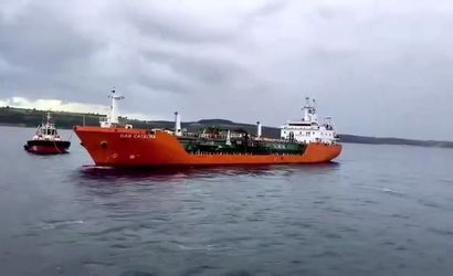 'Gas Catalina' kılavuz kaptan ve römorkörler eşliğinde Karanlık Liman'da demirledi