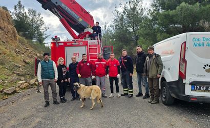 Çanakkale'de dağlık alanda mahsur kalan köpeği Çanakkale Belediyesi ekipleri kurtardı.
