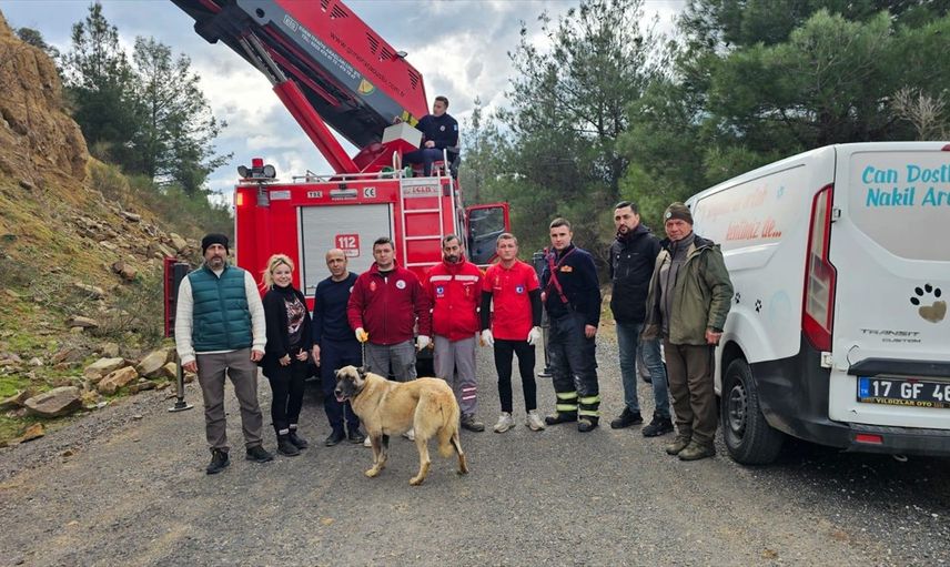 Çanakkale'nin Serçeler köyündeki dağlık alanda mahsur kalan bir köpek, Çanakkale Belediyesi ekipleri tarafından kurtarıldı.
