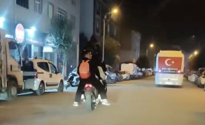 Hamdibey Mahallesi İnönü Caddesi üzerinde seyir halinde olan motosikletteki tehlikeli yolculuk, başka bir araçtaki yolcu tarafından saniye saniye cep telefonu kamerasına kaydedildi. Görüntülerde aracın dengesiz görünümü ve riskli taşıma açıkça görülüyor.
