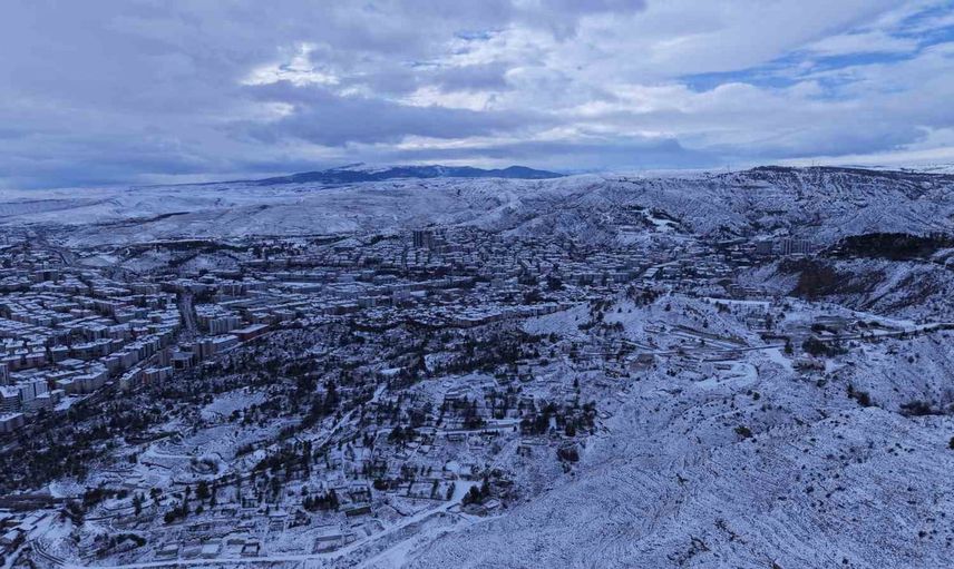 Çankırı'da karla kaplanan kent merkezi havadan görüntülendi