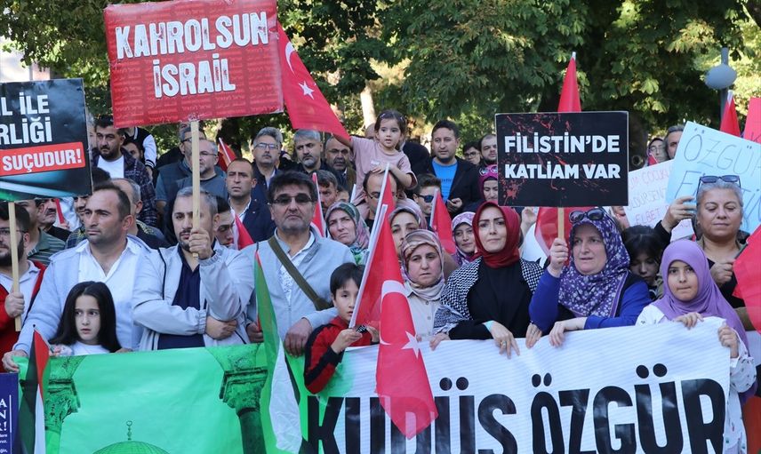 Konuşmanın ardından İl Müftüsü Mehmet Şahin tarafından dua yapıldı ve etkinlikte İsrail aleyhinde sloganlar atıldı.