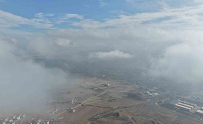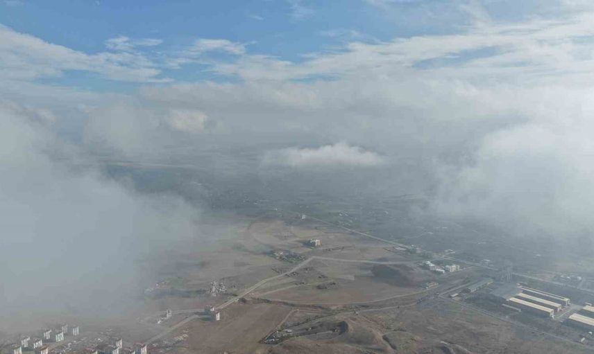 Güneşin doğuşuyla birlikte sis tabakası ışıkla bütünleşerek mistik bir atmosfer yarattı. Havadan kaydedilen görüntüler, şehrin üstünü saran bulutların sunduğu manzarayı gözler önüne serdi.