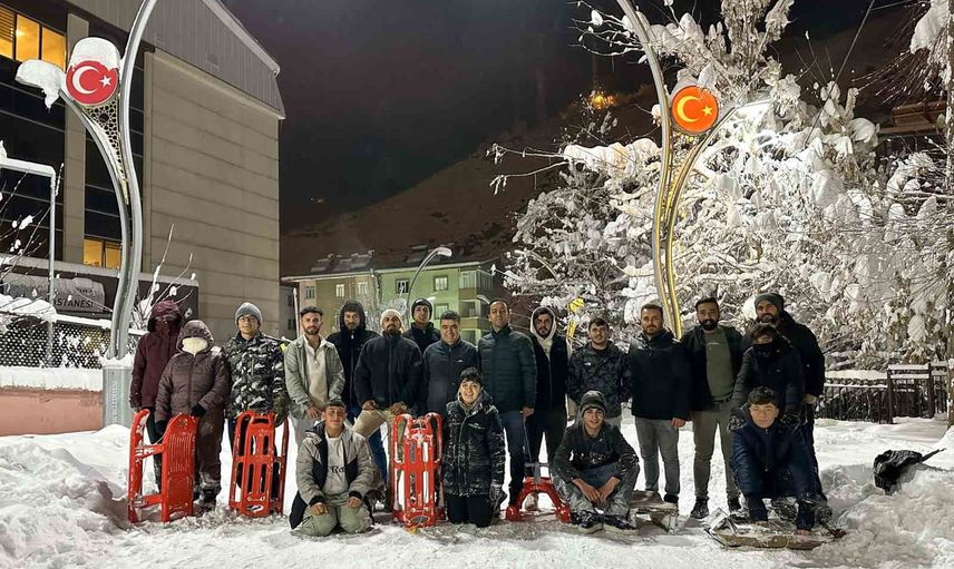 Çatak’ta öğrenciler kar tatilini kızak şenliğine çevirdi