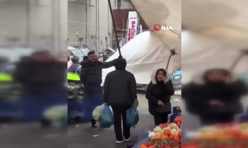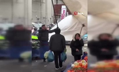 Pazarcılar, havalanan branda demirlerini tutmaya çalışırken, alışveriş yapan vatandaşlar da güçlükle güvenli bölgelere yönlendirildi.