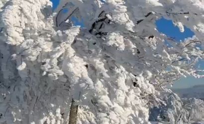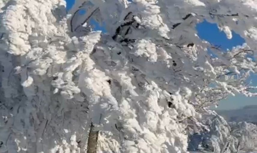 Zirve, kar ve buzla kaplı yüzeyiyle adeta donmuş bir dünyanın izlenimini verdi. Off road araçlarıyla tepeye çıkan kişiler, ağaçlardan sarkan buz sarkıtları ve bembeyaz, buzlu zemini kayda alarak bölgenin çarpıcı kış manzarasını belgeledi.