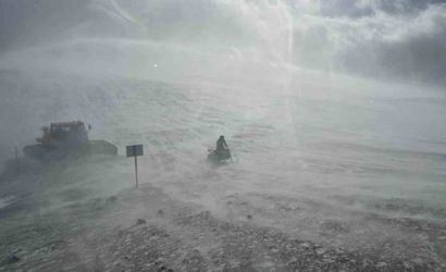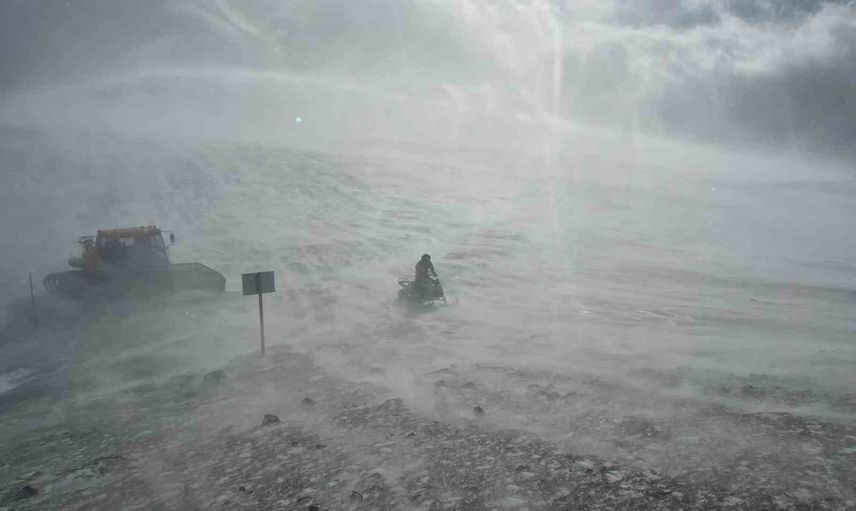 Kar fırtınasının yarattığı yoğun hava koşulları, bölgenin doğal panoramasıyla birleşerek izleyenlere etkileyici bir görsel şölen sundu.