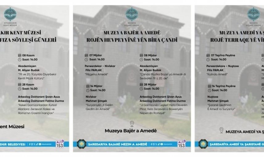 Diyarbakır Büyükşehir Belediyesi bünyesindeki Cemilpaşa Konağı Kent Müzesi, Kasım ayı boyunca farklı başlıklarda düzenlenecek kültürel hafıza söyleşileri ile kent belleğini ve yerel kültürü odağa alıyor. Söyleşiler akademisyen, eğitimci, yazar ve arkeologların katılımıyla gerçekleştirilecek.