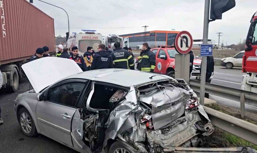 Kazada, Çerkezköy istikametine seyreden ve ışıklarda bekleyen otomobili B.A. idaresindeki araç olarak belirtildi. Arkadan gelen tırın sürücüsü S.S. yönetimindeki araç, otomobile çarptı. Çarpışmanın etkisiyle otomobil savruldu ve araç içinde bulunan kişiler sıkıştı.