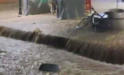Cadde ve sokaklar göle döndü, görüntülerde denizle kara birleştiği görüldü