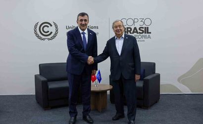 Cevdet Yılmaz, COP30 için bulunduğu Brezilya'nın Belem kentinde Birleşmiş Milletler Genel Sekreteri Antonio Guterres ile bir araya geldi.