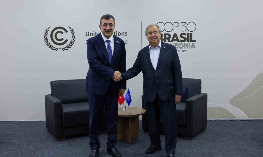 CUMHURBAŞKANI YARDIMCISI CEVDET YILMAZ, COP30 KAPSAMINDA BULUNDUĞU BREZİLYA'NIN BELEM KENTİNDE BİRLEŞMİŞ MİLLETLER GENEL SEKRETERİ ANTNİO GUTERRES İLE GÖRÜŞTÜ.