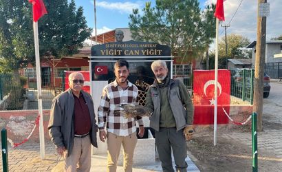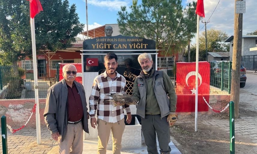 Ceyhan'da çiftçi, uçamayan şahine hasadı bırakıp yardım etti