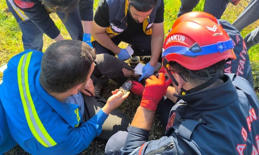 Ceyhan'da motorlu testereye sıkışan kişi kurtarıldı