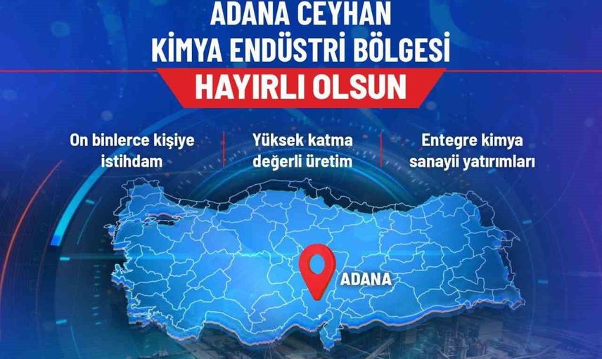 Sanayi ve Teknoloji Bakanı Mehmet Fatih Kacır, sosyal medya paylaşımlarında Adana Ceyhan Kimya Endüstri Bölgesi hakkında bilgi vererek, bölgenin önümüzdeki dönemde entegre kimya sanayii yatırımlarının merkezi haline getirileceğini duyurdu.