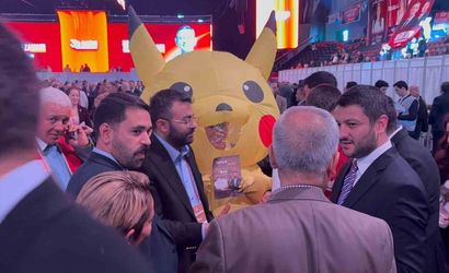 Büyük ilgi gören Pikachu kostümlü kişiyle birçok katılımcı fotoğraf çektirdi ve bu anlar salonda öne çıktı.