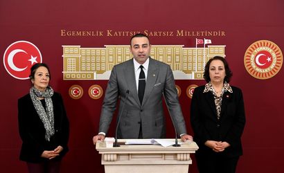 CHP Antalya Milletvekili Aykut Kaya (ortada), TBMM'de düzenlediği basın toplantısında açıklamalarda bulundu.