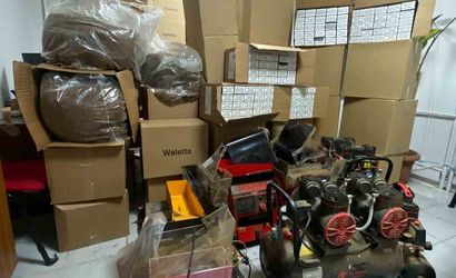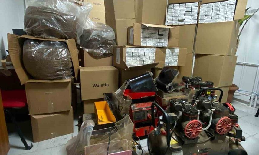 Aramalarda çok sayıda açık tütün, boş sigara makaronu ile sigara imalatında kullanılan otomatik elektrikli makineler ele geçirildi.