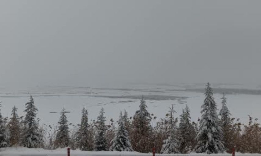 Cip Baraj Gölü buzlandı, karla beyaza büründü