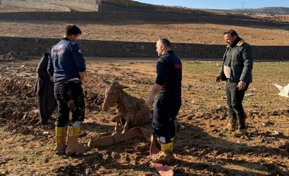 Şırnak’ın Cizre ilçesinde çamurlaşan arazide mahsur kaldılar