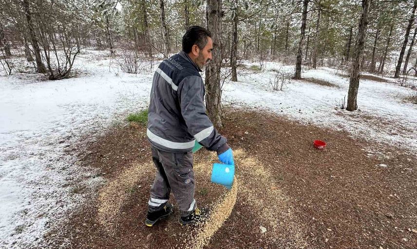 Çorum Belediyesi, kış mevsiminin etkisini artırdığı soğuk günlerde doğal ortamlarında besin bulmakta zorlanan yaban hayvanları ve kuşlar için doğada yemleme çalışması gerçekleştirdi.