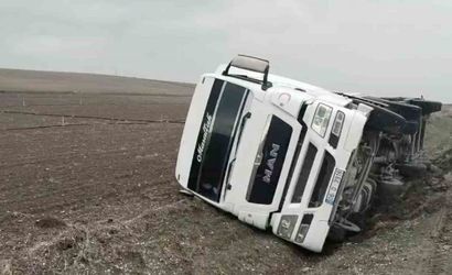 Çorum'un Merkez ilçesine bağlı Karaca köyü mevkiinde, sürücüsünün direksiyon hakimiyetini kaybettiği belirtilen 06 D 3918 plakalı tanker yol kenarındaki toprak alana çıkarak yan yattı.