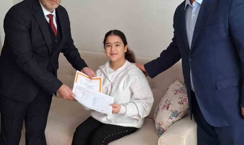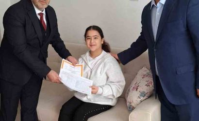 Müdür Çağlar, Mimar Sinan Ortaokulu 7. sınıf öğrencisi Tuğsem Bulut'un karnesini evinde verdi
