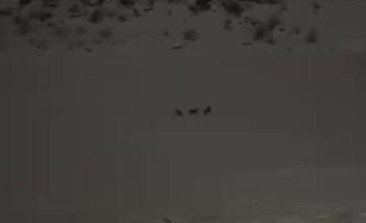 Yeni yıl akşamı etkili olan lapa lapa kar yağışı altında sürü halinde dolaşan kurtlar, karla mücadele ekibi tarafından kayda alındı.